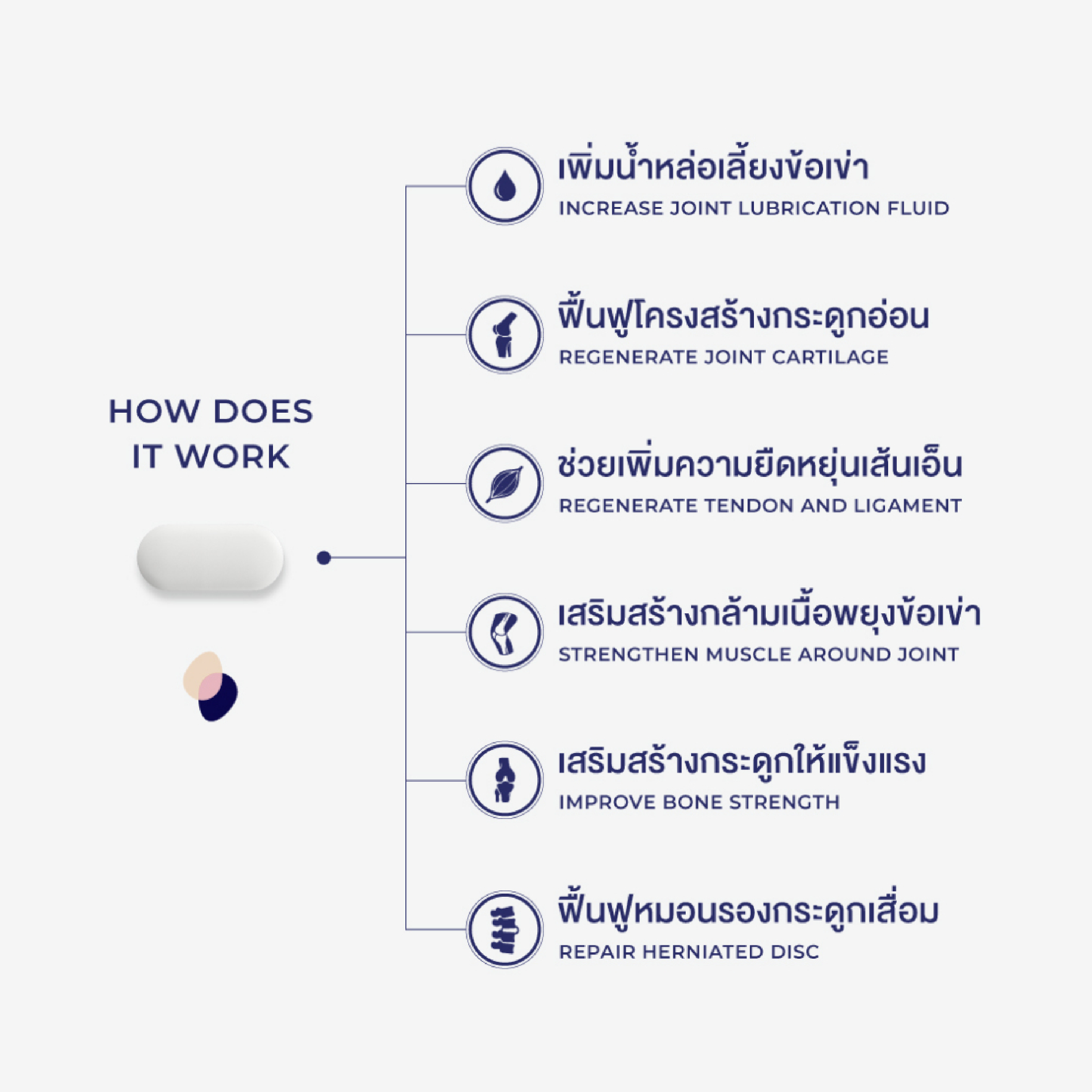 เป็นนวัตกรรมที่ฟื้นฟูกระดูก ข้อเข่า และหมอนรองได้แบบครบวงจร โดดเด่นด้วยส่วนผสมของ NEM® ที่เริ่มเห็นผลรวดเร็วใน 7-14 วัน ทานต่อเนื่องได้ระยะยาว โดยไม่มีผลข้างเคียงอันตราย