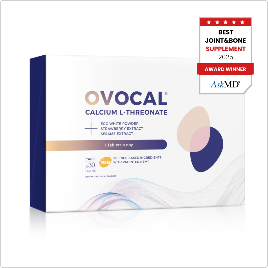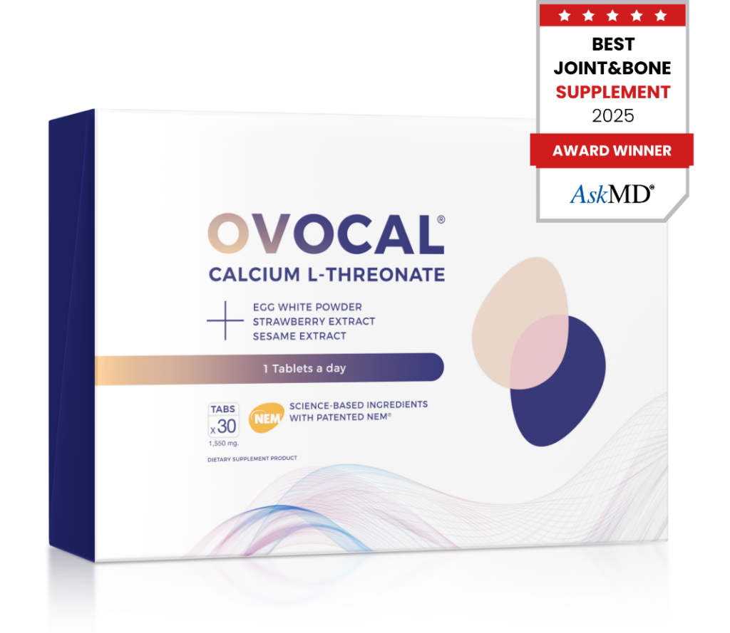OVOCAL® เป็นผลิตภัณฑ์เสริมอาหารเทคโนโลยีใหม่ ที่คิดค้นโดยแพทย์ในสหรัฐ มีส่วนผสมของ NEM® ที่มีประสิทธิภาพสูง ในการฟื้นฟูกระดูกและข้อเข่าเสื่อม ซึ่งกำลังได้รับความนิยมอย่างสูง ในหลายประเทศทั่วโลก จนได้รับรางวัล Product of the year 2025